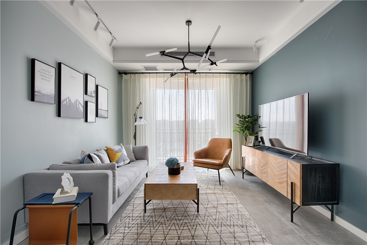 北歐室內(nèi)裝修設(shè)計,客廳采用灰色配臟橘色,穩(wěn)重又不失活躍。選用橘色這樣鮮艷色彩,只需把其降低一個色度,就讓整個空間瞬間亮了起來,充滿新鮮感,卻又不突兀。