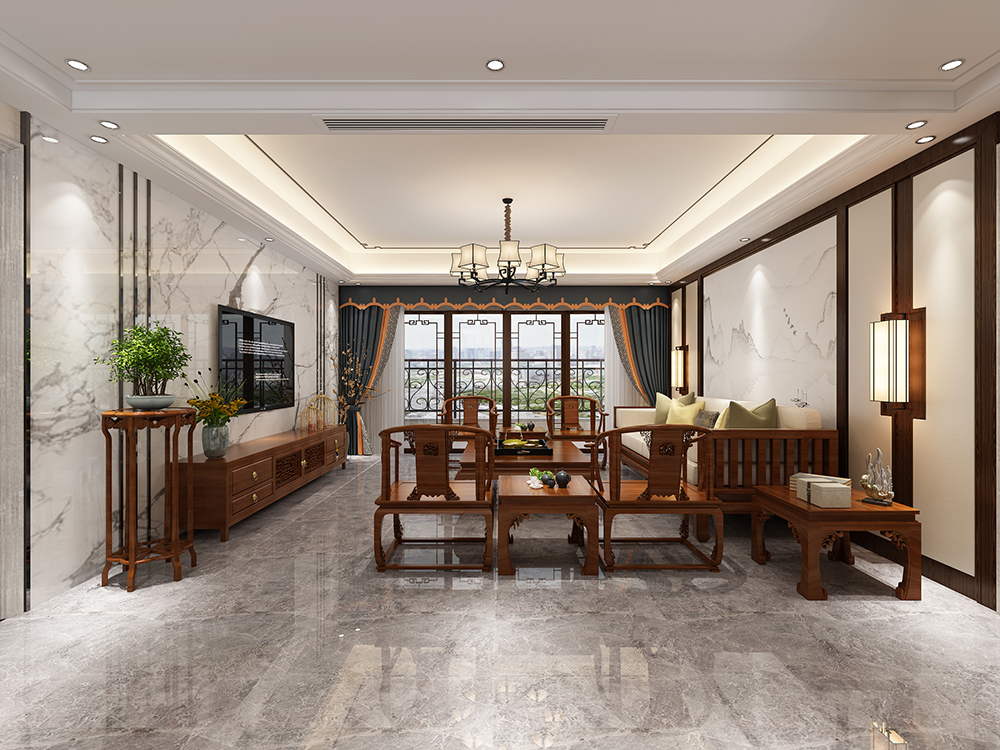 惠州201-300平米新中式風格景安花園家裝設計效果圖