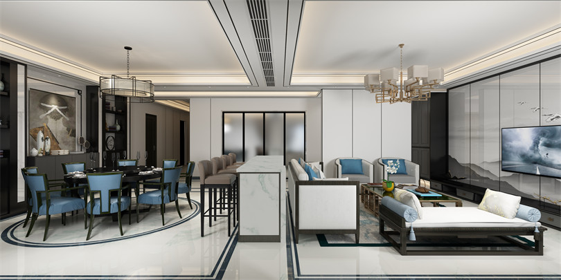 惠州201-300平米新中式風(fēng)格景安花園家裝設(shè)計(jì)效果圖
