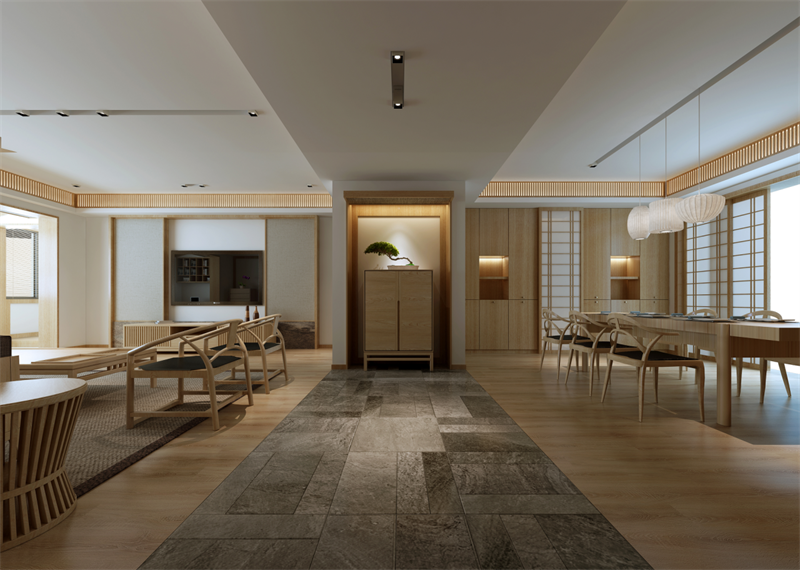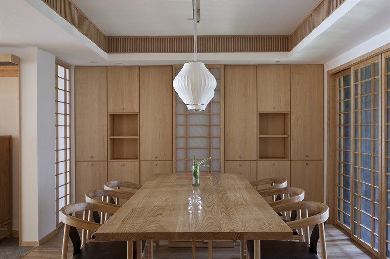 餐廳在格局裝修上從頂?shù)降囟际亲钐烊蛔顦銓嵉牟牧?,線條清晰,布置優(yōu)雅,木格拉門,洋溢著濃郁的和式風(fēng)情。