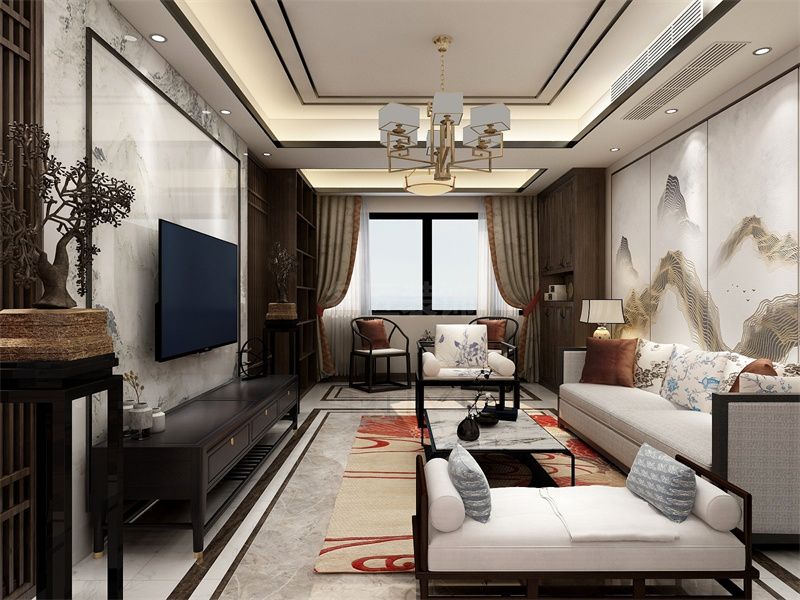安順智業(yè)公寓三居新中式風(fēng)格裝修效果圖