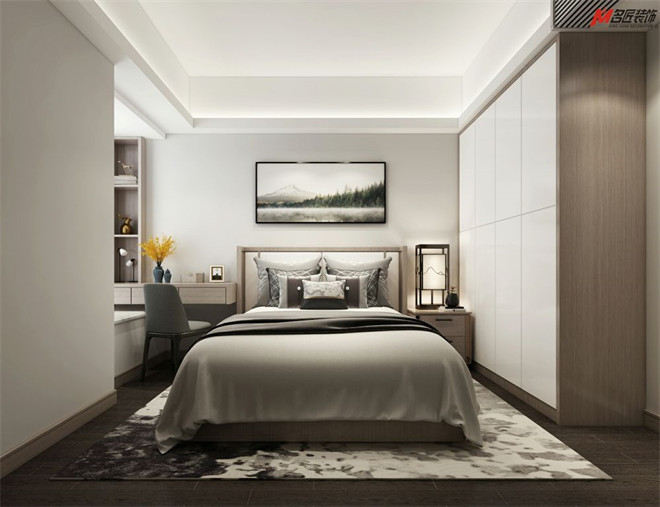 在公共空間的儒雅之外,設(shè)計(jì)師將濃重的筆墨留在了臥室。木飾紋面、精致的擺件,以和諧的比例出現(xiàn)在各處,淺灰雙人床、精美的邊柜、實(shí)用的衣櫥和床頭柜,無(wú)不展現(xiàn)出對(duì)細(xì)節(jié)的恰到好處。點(diǎn)睛之筆的壁畫(huà)和床頭燈飾呼應(yīng)了江南風(fēng)的小資情調(diào),滿懷青春的浪漫溫馨。
