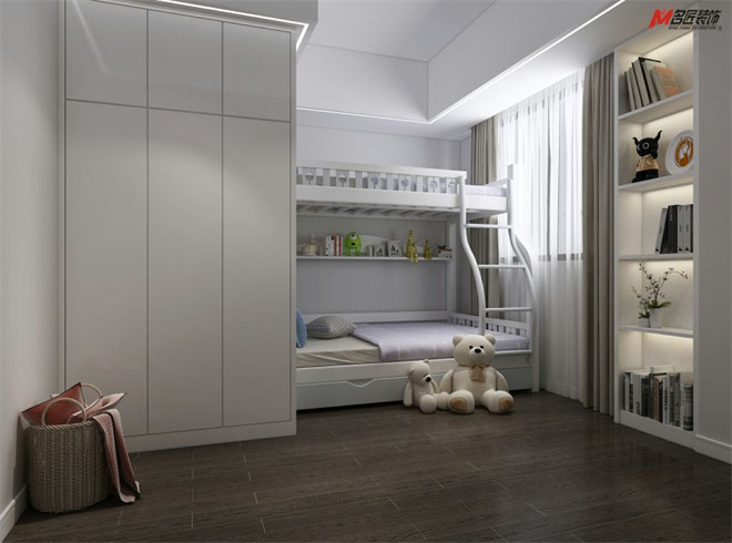 設(shè)計(jì)師營(yíng)造出心之所向童趣之地,耳目一新,透露出純真的童心未泯。木飾簡(jiǎn)約大氣實(shí)用性高,無(wú)形中表達(dá)了從內(nèi)到外的和諧過(guò)度。童趣滿滿的女兒房,清新的淡紫與純潔白交相呼應(yīng),以素雅和童真包容少女心。
