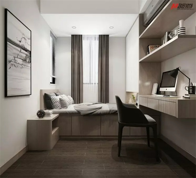 榻榻米打造的空間好看兼?zhèn)鋵?shí)用性。墻上的藝術(shù)作品,增添了藝術(shù)的氣息,為簡(jiǎn)潔的空間注入了藝術(shù)和文化的力量。無(wú)論是臨時(shí)居家辦公,備用客房,亦或是書(shū)房,這方小天地里游刃有余。