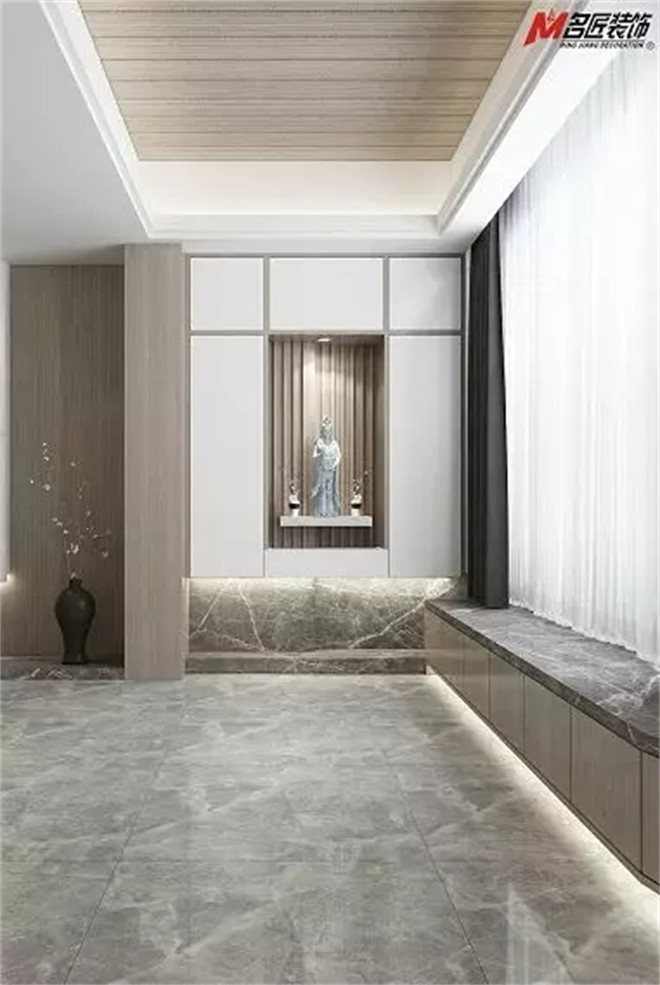 此案例以白色、灰色和原木色系搭配為主線,而奠定了簡(jiǎn)約之調(diào)的灰白讓人心生向往,墻上的精致擺件的映襯,仿佛是對(duì)生活的簡(jiǎn)約及情感信仰的表達(dá)。在細(xì)節(jié)之處出賣(mài)了主人雅致品味和淡雅生活方式。
