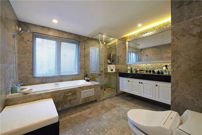 衛(wèi)生間是屬于復(fù)古風(fēng)的,古樸的地磚、墻磚,展現(xiàn)樸實(shí)優(yōu)雅的外觀,打造出溫暖的居室氛圍。