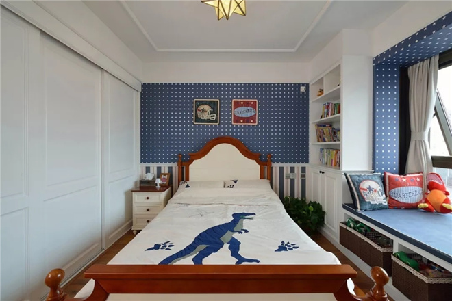 兒童房注重兒童的自由隨意與舒適性,美國(guó)兒童對(duì)于自己的房間很在意,極在乎個(gè)人空間,因此美式兒童房在設(shè)計(jì)上也格外用心,兒童房采用富于變化的色彩,看似隨意擺放的家具,都體現(xiàn)出設(shè)計(jì)師對(duì)于美式兒童房設(shè)計(jì)的自由理念。