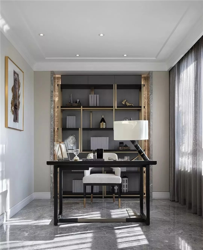 從客廳到書房,幾步之遙,卻給予主人一個閱讀、工作與獨(dú)處的靜雅空間。倚窗而立,在光影交匯的書房中,從技藝精良的昆蟲飾品上,窺見主人的高雅品位,窺見沙漏流金的時光里主人對生活的享受。