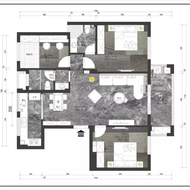 將所主臥室房門(mén)外移,將該衛(wèi)生間納入主臥,這樣避開(kāi)衛(wèi)生間門(mén)對(duì)大門(mén),設(shè)置一個(gè)對(duì)景裝飾,整體效果更為合理。