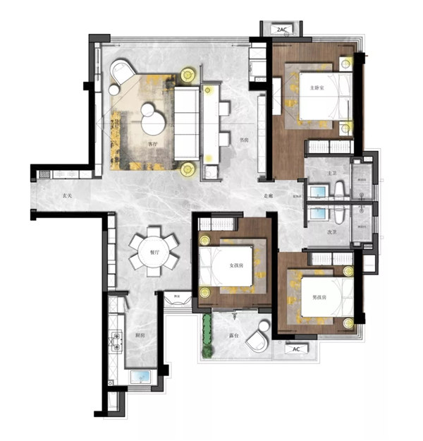珠海華發(fā)四季城三居現(xiàn)代簡約風格裝修效果圖