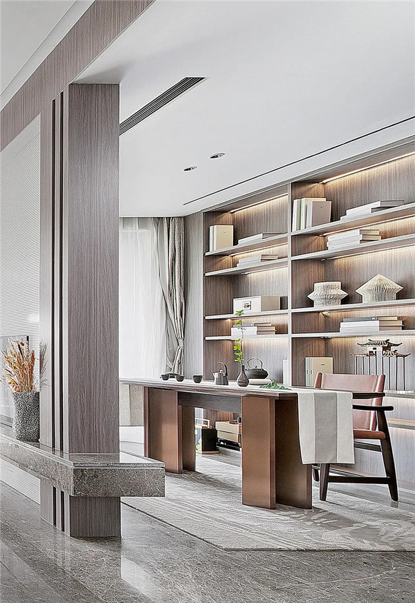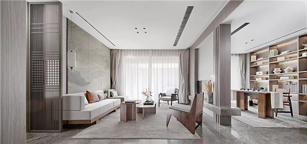 現(xiàn)代元素與古典元素相結(jié)合的方式,立足于傳統(tǒng),又施之以創(chuàng)新,呈現(xiàn)出了極為濃郁的東方情調(diào)。傳統(tǒng)與現(xiàn)代交融,古樸與時(shí)尚融匯,新中式是人們?cè)谛鷩讨凶非箝e云野鶴的捷徑,在自己的一方天地中,感悟時(shí)間的悄然流逝,平和淡然。