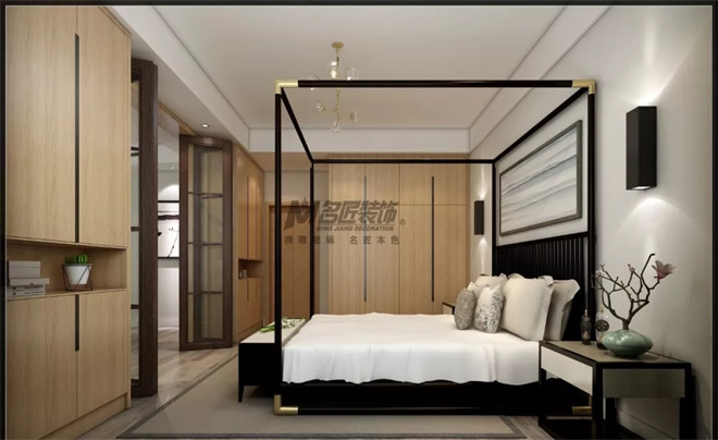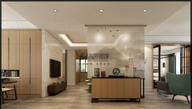 在本案空間里,木地板瓷磚、背景的木紋石材、灰色亞光房門、亞麻硬包及木飾面都有一個最好的質(zhì)感詮釋