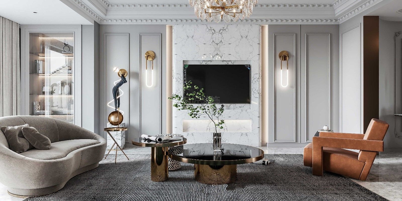江門新外灘三居歐式風格裝修效果圖