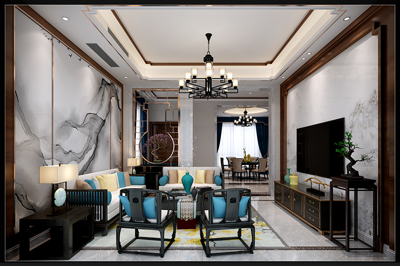 六安碧桂園天璽別墅新中式風(fēng)格裝修效果圖