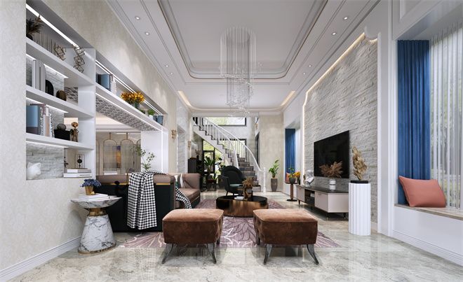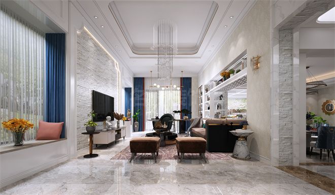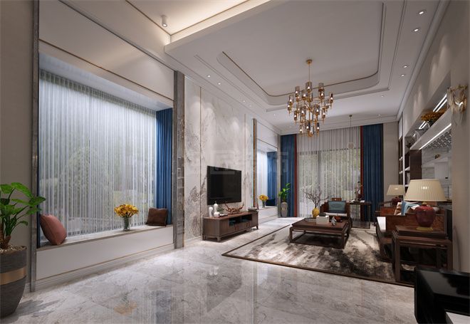 中山保利林語別墅新中式風(fēng)格裝修效果圖