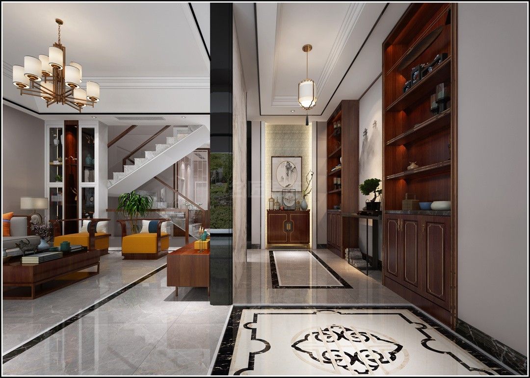 中山保利林語麓山別墅新中式風(fēng)格裝修效果圖