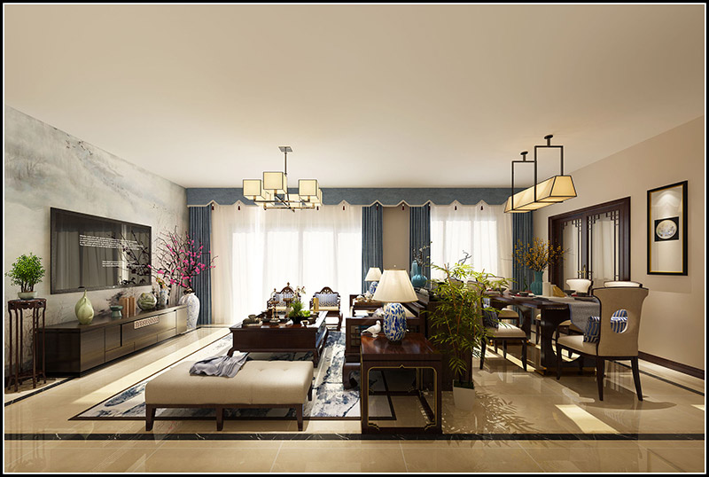 佛山美的明湖二居新中式風(fēng)格裝修效果圖