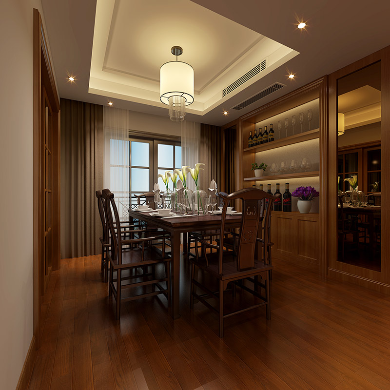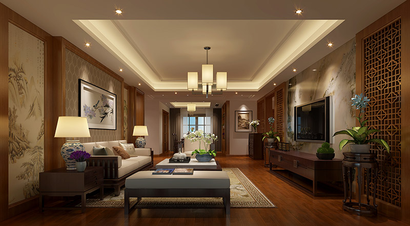 重慶東方港城四居新中式風(fēng)格裝修效果圖