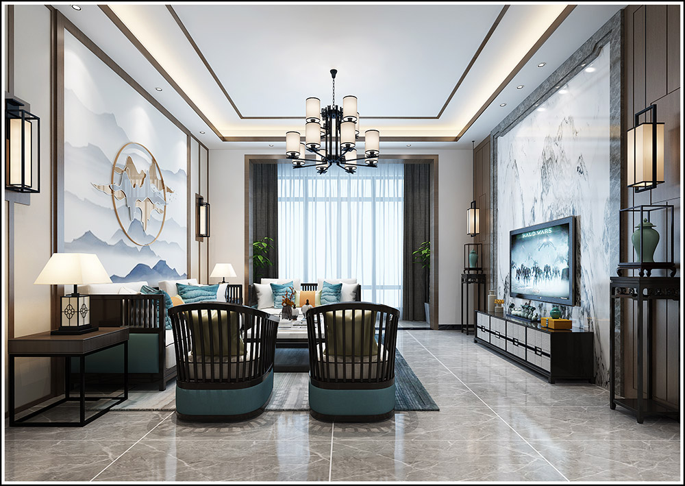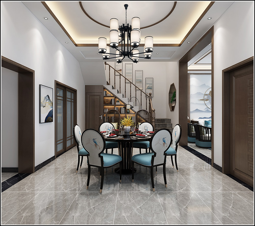 楚雄彝族自治州復(fù)興苑別墅新中式風(fēng)格裝修效果圖