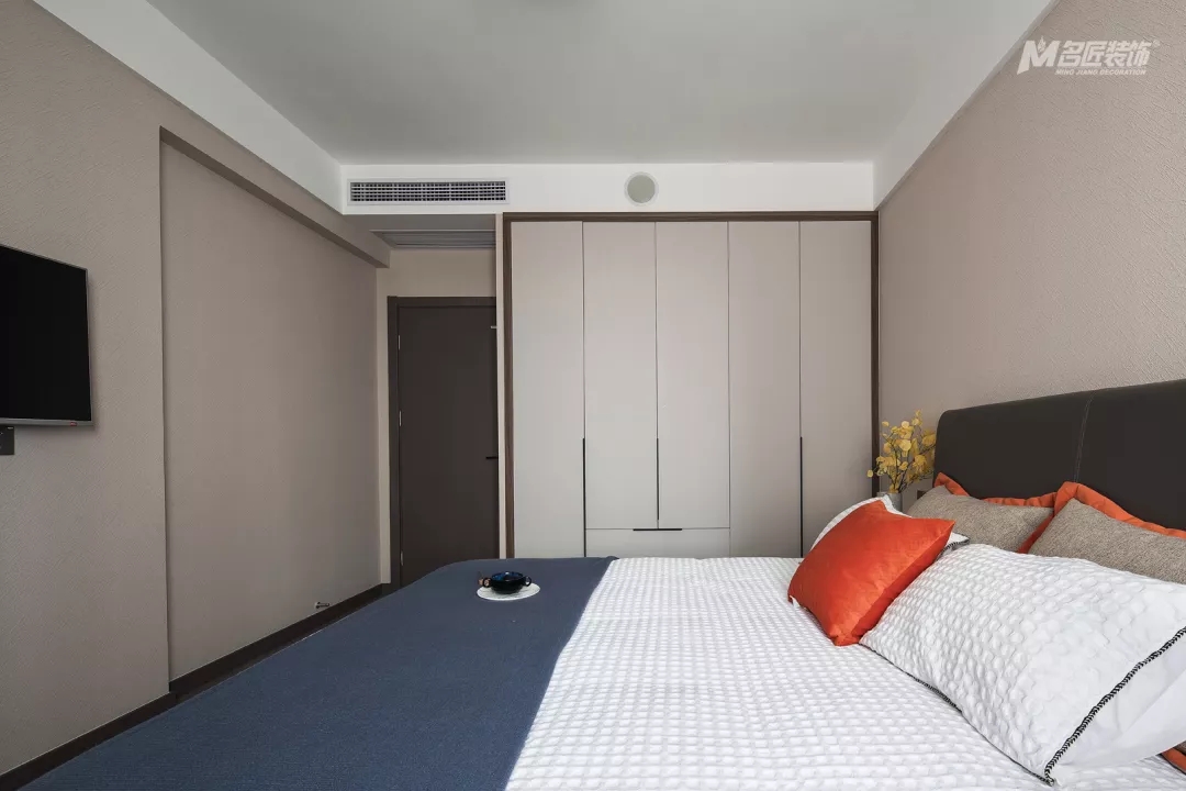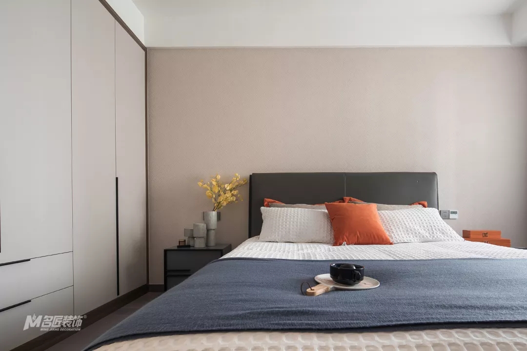 次臥又融入了煙灰藍(lán),與整體高級灰基調(diào)相搭配,空間更顯穩(wěn)重大方,精致優(yōu)雅。