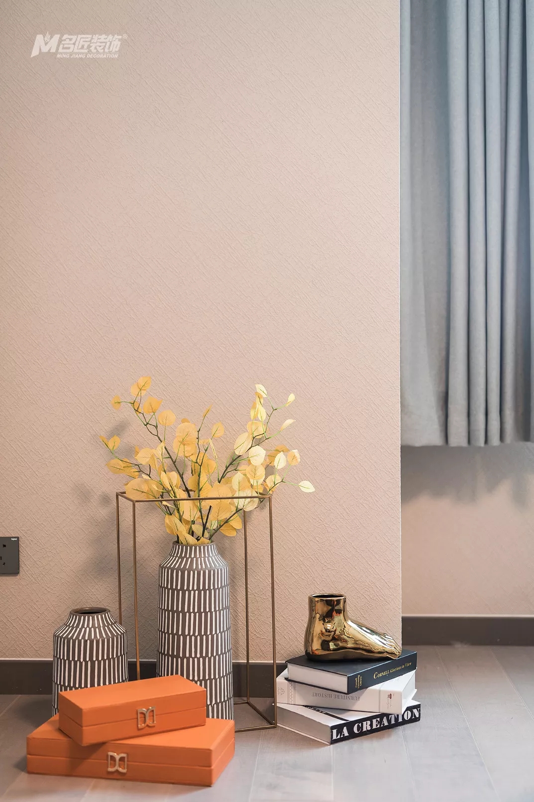 高級灰是一種不張揚(yáng)的色彩,雖沒有白色的純凈,也沒有黑色的深邃,但是和其他色彩的相輔相成,會營造出極為精致的空間氛圍,而在本案中,高級灰將會與愛馬仕橙、原木色相互融合,帶來極為時(shí)尚精致的家。