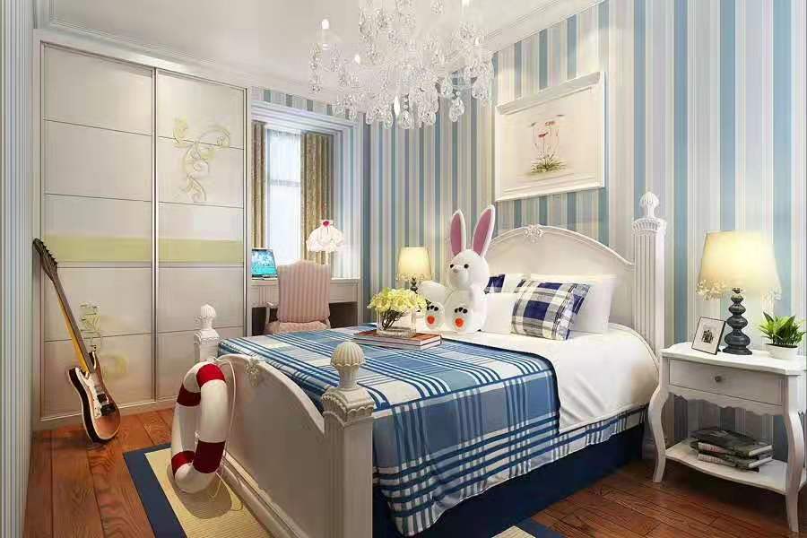 3、藍色有著許多的層次分類,往往被作為冷的象征。如果家中有男孩子,那么可以選擇藍白作為房間的裝飾色,如上面的兒童房間裝修效果圖所示。藍色給人一種沉穩(wěn)的感覺,將藍色作為主要的裝飾色,可以為男孩子塑造穩(wěn)定、淡然的性格。同時搭配上不同的圖案,可以給孩子無限的想象空間,啟發(fā)孩子的想象力。同時大海的藍色,也可以使孩子心胸寬廣,更容易包容。由于藍色帶著一點點的憂郁氣息,所以裝飾色彩搭配白色作為調(diào)和,可以使其變得明亮,活潑。