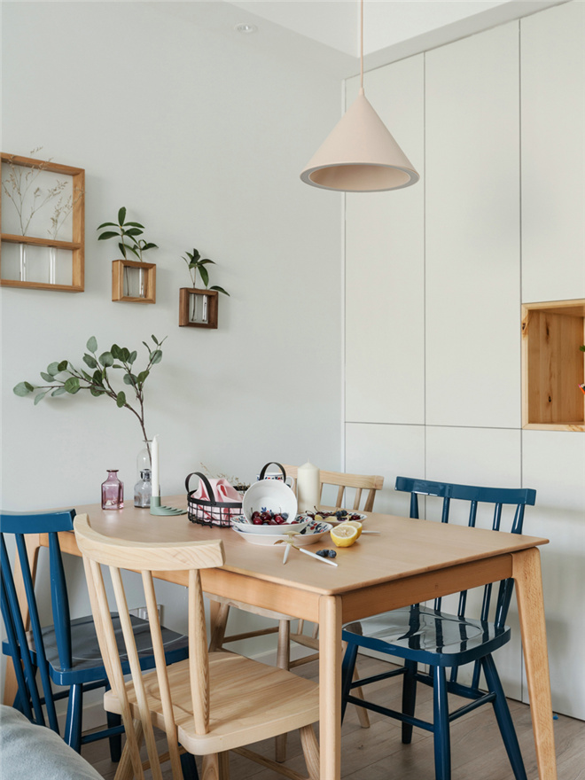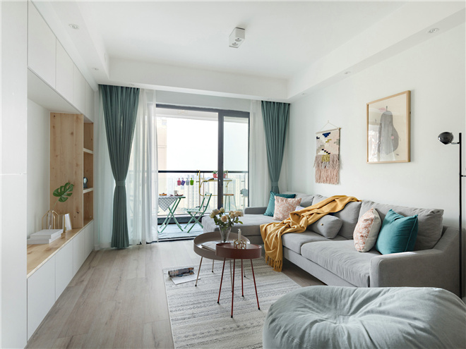 業(yè)主是一對新婚不久的年輕夫婦,為公司職員,這兩年計劃準備要小孩,在設計上不僅考慮短期的功能需求更多考慮未來幾年的功能變化,儲物空間的需求尤為重要,用柜子來做裝飾,既美觀又能儲物,大大的提高對有限空間的利用,結合這些需求,最終選定了休閑居家的北歐風格。
