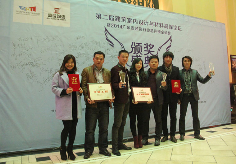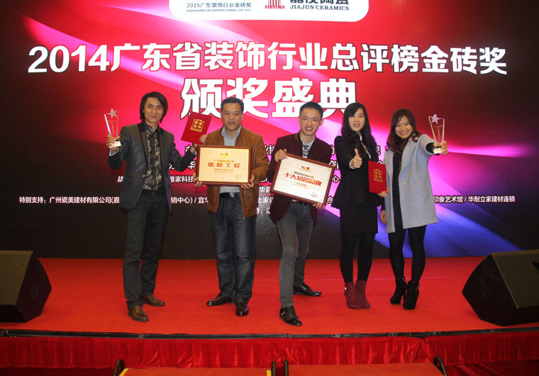 名匠廣州訊(通訊員:蘇文瑩)2015年1月12日,第二屆建筑室內(nèi)設(shè)計(jì)與材料高峰論壇暨2014廣東省裝飾行業(yè)總評(píng)榜金磚獎(jiǎng)?lì)C獎(jiǎng)典禮在廣州長(zhǎng)隆酒店隆重舉行。這次頒獎(jiǎng)典禮,由中國(guó)室內(nèi)裝飾協(xié)會(huì)裝飾材料用品專(zhuān)業(yè)委員會(huì)與廣東省裝飾行業(yè)協(xié)會(huì)聯(lián)合主辦,是廣東省裝飾行業(yè)協(xié)會(huì)為表彰和推介每年在廣東裝飾行業(yè)有突出成績(jī)的優(yōu)秀設(shè)計(jì)師、設(shè)計(jì)機(jī)構(gòu)、裝飾企業(yè)及優(yōu)質(zhì)工程等裝飾行業(yè)項(xiàng)目,以達(dá)到激勵(lì)廣東設(shè)計(jì)師、設(shè)計(jì)機(jī)構(gòu)和裝飾企業(yè)不斷開(kāi)拓進(jìn)取而舉辦的一次具有重大意義的大型活動(dòng)。